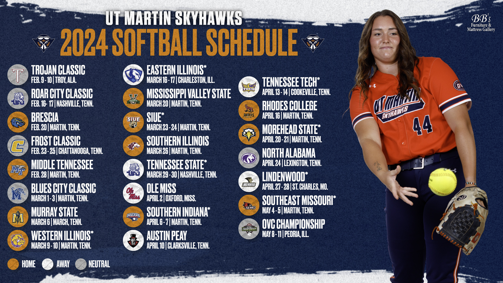 Source : goshockers.comSKYHAWK SOFTBALL ANNOUNCES LOADED 2024 SCHEDULE UTM Athletics